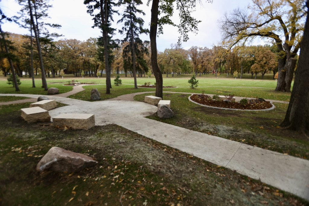 Planning began in late 2022, with design concepts contributed by NDSU’s Landscape Architecture students and MSUM’s Art and Design students. From ten creative proposals, the design by NDSU student Kaja Holtz was chosen as the foundation for the final plan. The Fargo Park District provided construction expertise, while the Kiwanis Club of Fargo championed design and fundraising efforts, including dedicating proceeds from the 2025 Kiwanis Pancake Karnival.