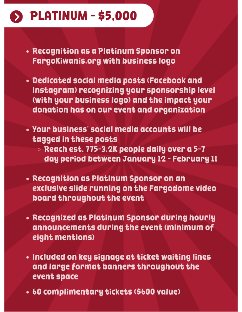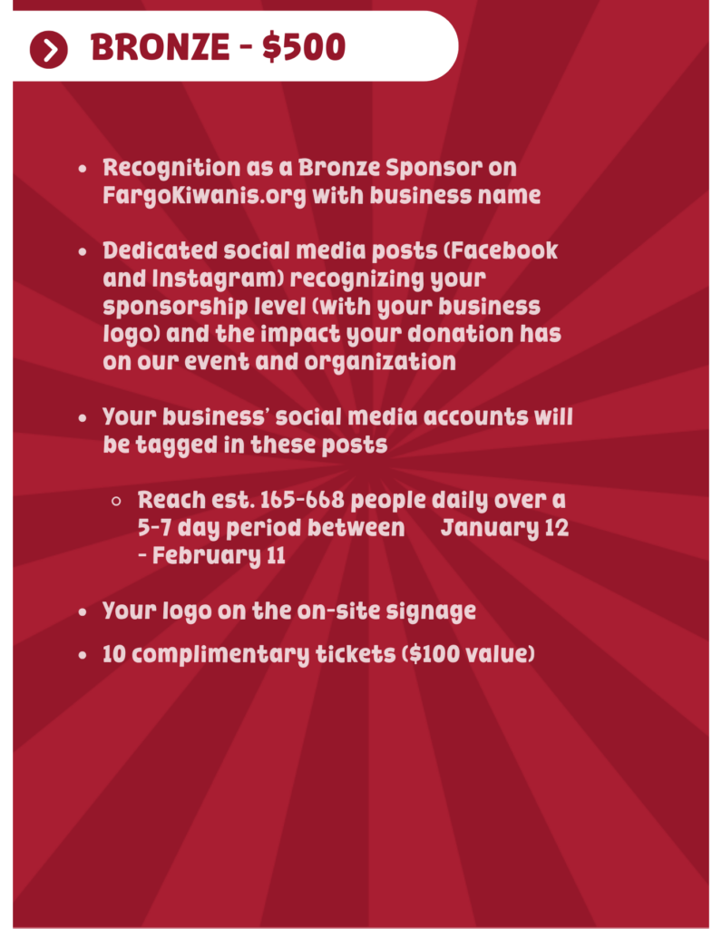 In North Dakota, 1 in 6 children faces food insecurity, and the organizations supported through this year’s Karnival, including Bridging the Gap, Churches United, and Great Plains Food Bank, play a crucial role in making sure kids have consistent access to nutritious meals, safe shelter, and essential resources. Your sponsorship becomes part of that impact. Every dollar helps strengthen local families, empower children, and build a stronger, more hopeful community.
